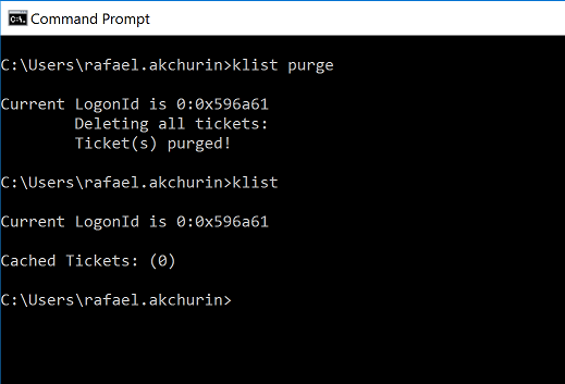 klist purge. It will delete all your Kerberos tickets. If you typeklistagain it should sayCached Tickets: (0).
