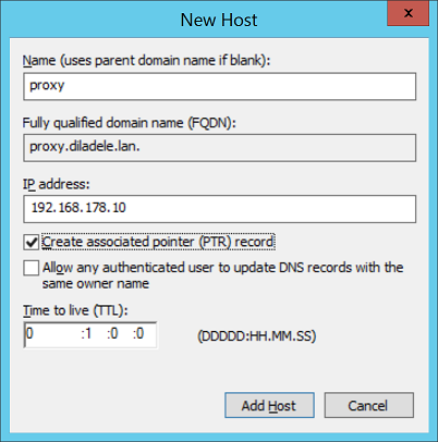 First, create new type A record for proxy.example.lan with IP address 192.168.178.10. This will be the haproxy frontend to our cluster.
